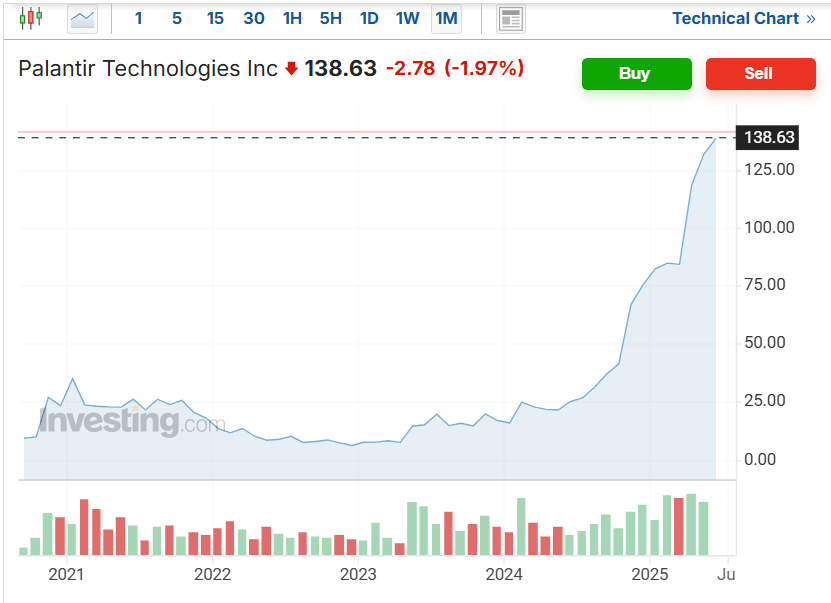 Palantir’s star is rising rapidly under Trump 2.0 while its shares hit record highs on an almost daily basis. The firm’s co-founder, Peter Thiel, was one of relatively few Silicon Valley moguls to bankroll Trump’s 2016 presidential campaign, and now he’s cashing in. Thiel is also a former employer-cum-mentor of Vice President JD Vance, whose senate run Thiel almost single handedly funded with a record breaking $15 million donation. This would seem to suggest that Thiel’s influence would be even greater in a Vance administration.