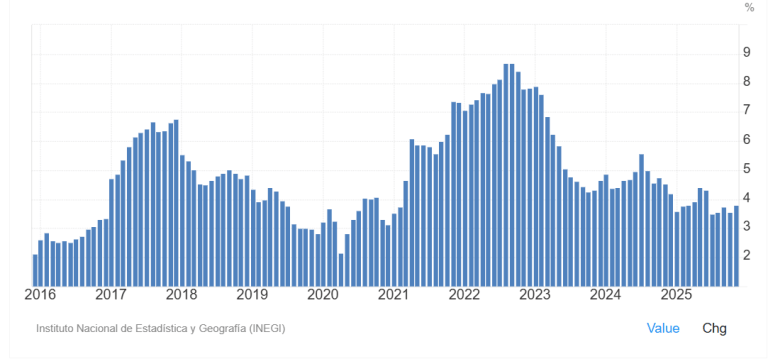 Mexico’s Consumer Price Index is now at 3.8%, which is one percentage point lower than the level it was at in late 2018, when the minimum daily wage was roughly 70% lower than it is today.